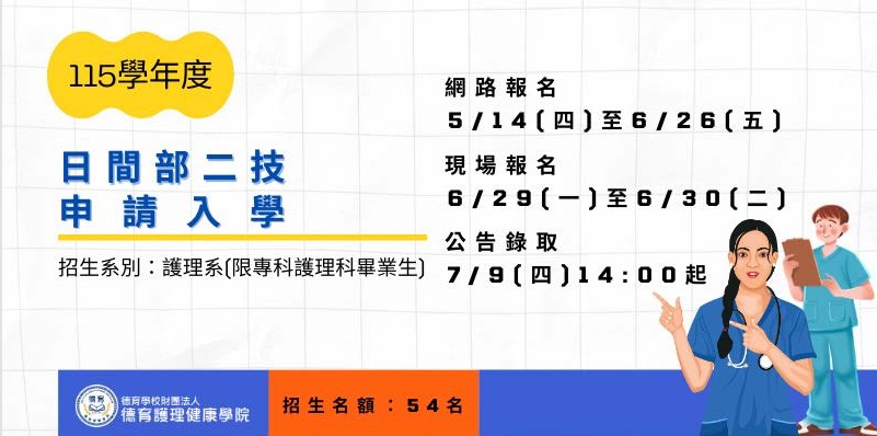 德育學校財團法人德育護理健康學院校-115學年度二技日間部護理系申請入學招生簡章